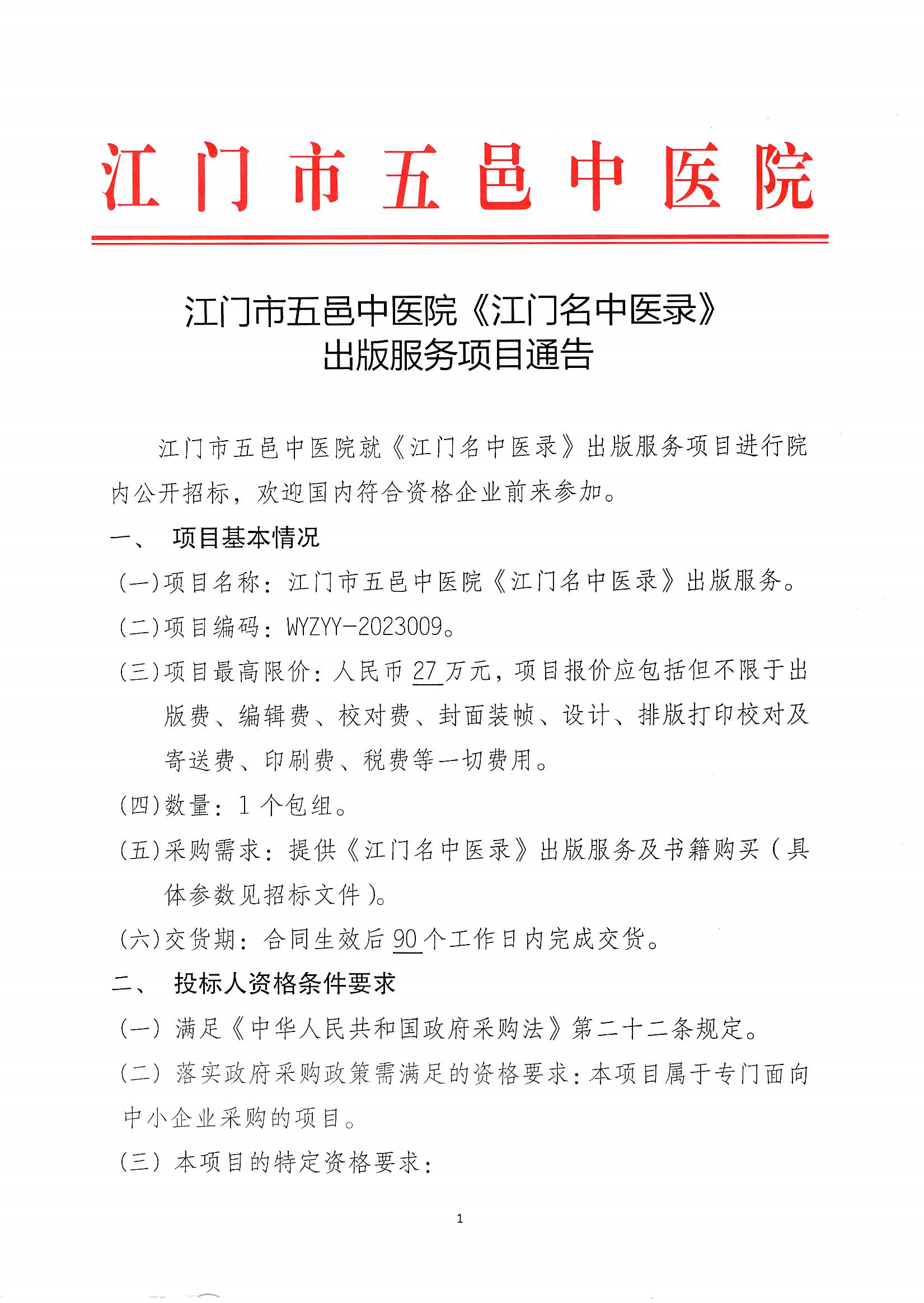 江门市五邑中医院《江门名中医录》出版服务招标通告