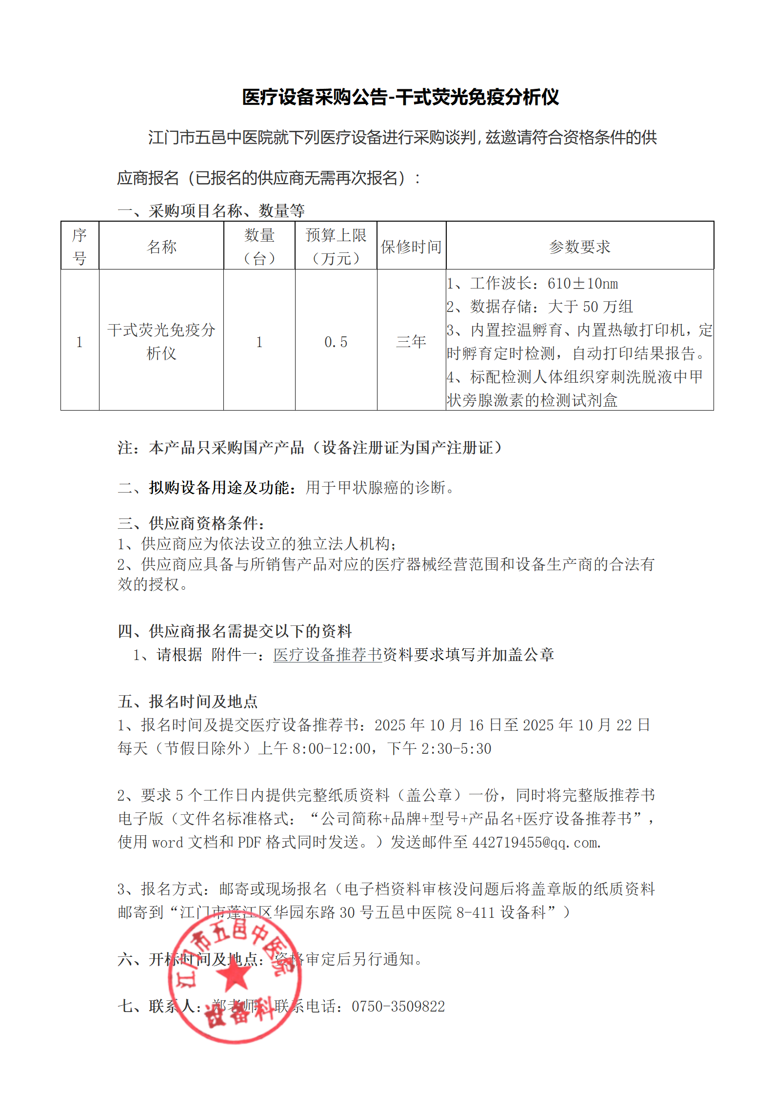 附件一五邑中医院医疗设备推荐书模板 .docx