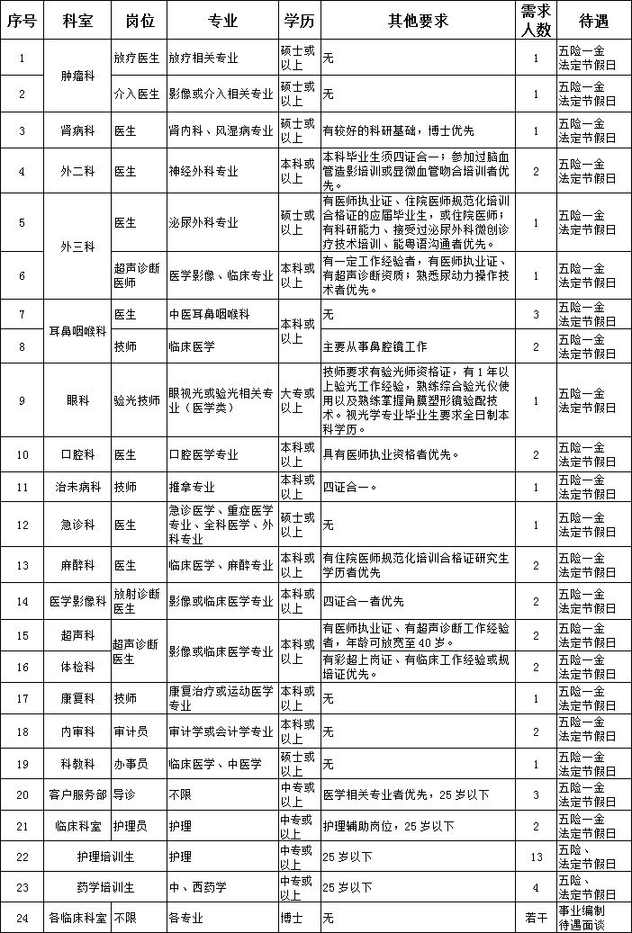 4、所有博士、博士后年龄不限;医生岗位要求年龄在35岁以下;其他岗位要求年龄在30岁以下(有特别注明的除外)。